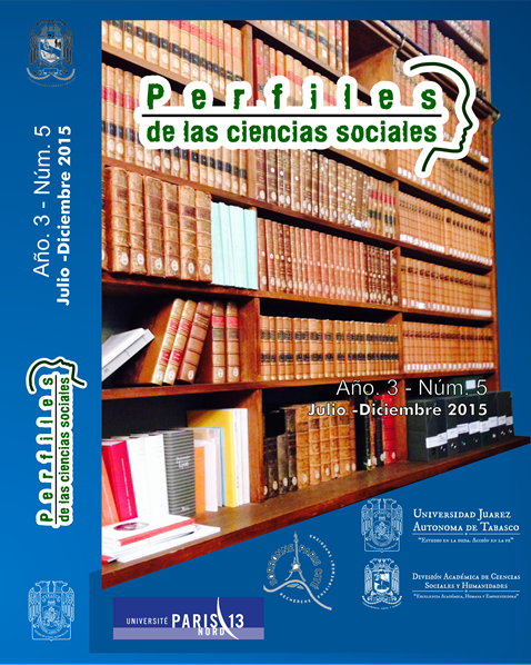 Perfiles de las Ciencias Sociales es una revista electrónica e impresa arbitrada multidisciplinaria que se edita semestralmente por la Universidad Juárez Autónoma de Tabasco desde 2014, publica resultados de investigaciones científicas originales e inéditas en el área de las Ciencias Sociales y Humanidades, relacionados con la Historia, Sociología, Derecho y Áreas jurídicas. En la publicación es coeditora la Université París Nord 13, Sorbonna París Cité. Perfiles de las Ciencias Sociales se encuentra indexada en IRESIE (Índice de Revistas de Educación Superior e Investigación Educativa).