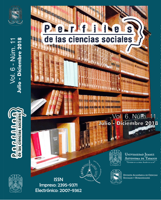 Perfiles de las Ciencias Sociales es una revista electrónica arbitrada multidisciplinaria que se edita semestralmente desde el año 2014 a través de la División Académica de Ciencias Sociales y Humanidades de la Universidad Juárez Autónoma de Tabasco, mediante la cual se publican resultados de investigaciones científicas originales e inéditas, que no se han postulado previa o simultáneamente en otras revistas u órganos editoriales, del área de las Ciencias Sociales y Humanidades, relacionados con Historia, Sociología y Derecho. La revista está incluida en el índice IRESIE (Índice de Revistas de Educación Superior e Investigación Educativa).