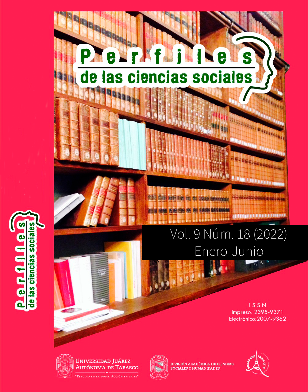 PERFILES DE LAS CIENCIAS SOCIALES, Volumen 9, Número 18, enero-diciembre 2022, es una publicación continua editada por la Universidad Juárez Autónoma de Tabasco,  Av. Universidad S/N, Zona de la Cultura, Col. Magisterial, C.P. 86040, Villahermosa Tabasco, México. Tel. (+52) (933) 358 1500 Ext. 6309, https://revistas.ujat.mx/index.php/perfiles, perfilescsdacsyh@ujat.mx. Editor Responsable de la Revista: Pedro Humberto Haddad Bernat. Reserva de derechos al uso exclusivo 04-2013-070514592700-203, ISSN: 2007-9362, ambos otorgados por el Instituto Nacional del Derecho de Autor. Responsable de la última actualización de este número, Pedro Humberto Haddad Bernat. Universidad Juárez Autónoma de Tabasco, Av. Universidad S/N, Zona de la Cultura, Col. Magisterial, Centro, Tabasco. C.P. 86040.
