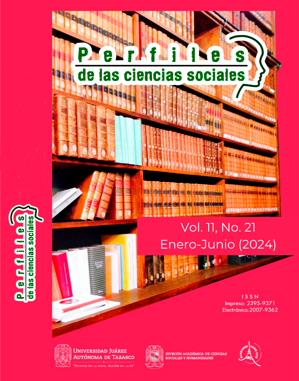 PERFILES DE LAS CIENCIAS SOCIALES, Volumen 11, Número 22, julio-diciembre 2024, es una publicación continua editada por la Universidad Juárez Autónoma de Tabasco,  Av. Universidad S/N, Zona de la Cultura, Col. Magisterial, C.P. 86040, Villahermosa Tabasco, México. Tel. (+52) (933) 358 1500 Ext. 6309, https://revistas.ujat.mx/index.php/perfiles, perfilescsdacsyh@ujat.mx. Editor Responsable de la Revista: Pedro Humberto Haddad Bernat. Reserva de derechos al uso exclusivo 04-2013-070514592700-203, ISSN: 2007-9362, ambos otorgados por el Instituto Nacional del Derecho de Autor. Responsable de la última actualización de este número, Pedro Humberto Haddad Bernat. Universidad Juárez Autónoma de Tabasco, Av. Universidad S/N, Zona de la Cultura, Col. Magisterial, Centro, Tabasco. C.P. 86040.